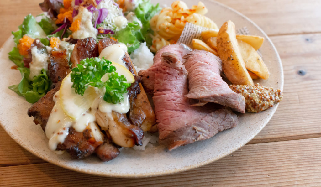 北大阪急行の延伸計画など、いま注目のエリア箕面・船場にあるハンバーガショップ「カフェ リコ」。1Fのビンテージウッドの壁やスタイリッシュなガラス張りの外観が特徴で、店内は天井が高く開放的な雰囲気。まるで海外のダイナーに来たような気分を味わえます。看板メニューでもあるこだわりのハンバーガーは数種類をご用意。特注のバンズに国産牛100%のパテ、新鮮なお野菜をたっぷり使ったボリューミーで食べ応えのある一品です。ランチプレートも人気のひとつで、中でも毎朝テラスで焼き上げるBBQチキンはジューシーで絶品。リピーターのお客さんも多いのだとか。料理に使うソースやドレッシングも全てオリジナルというこだわりぶり。天気のいい日はテラス席でのんびり味わいたい。