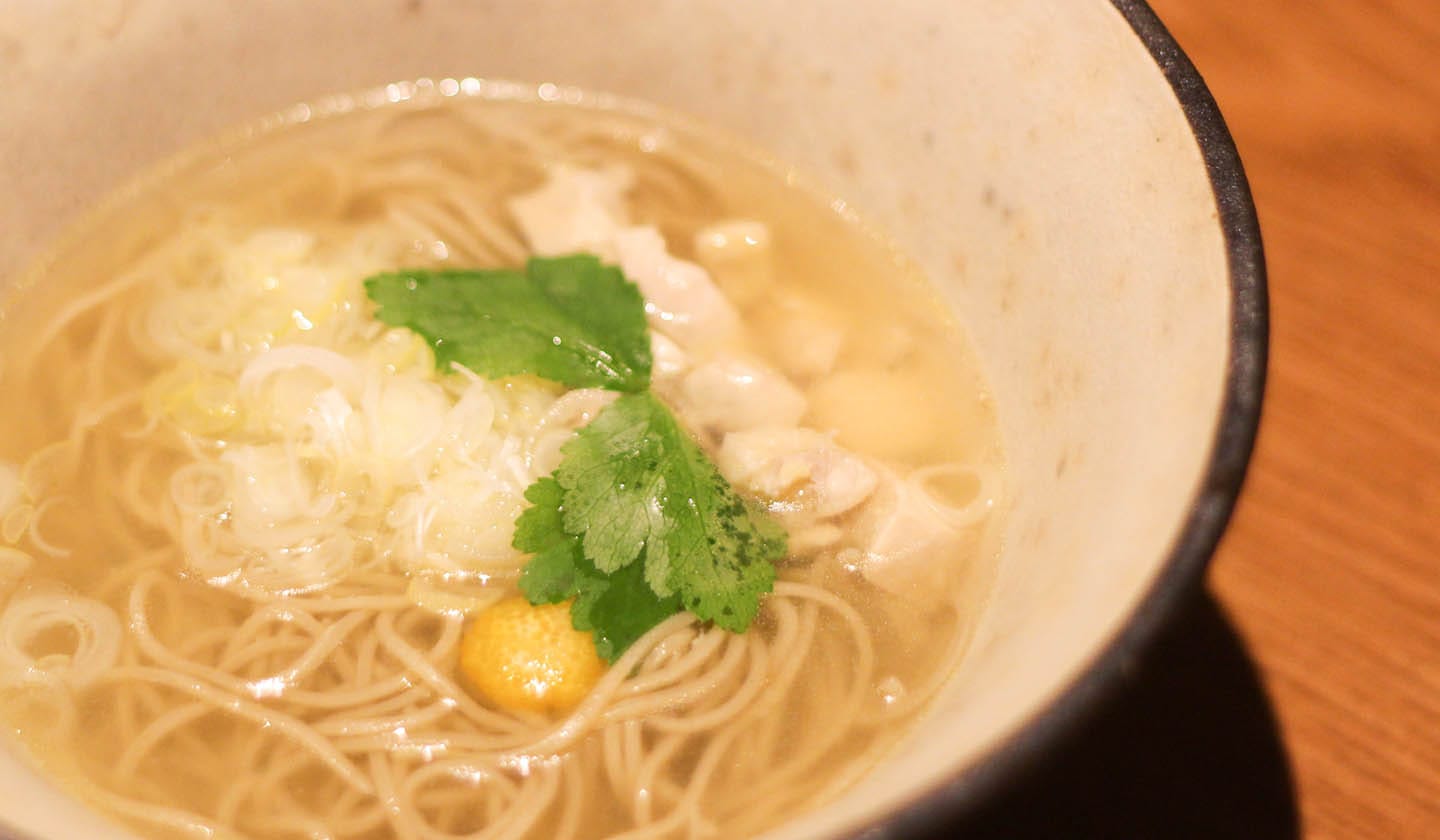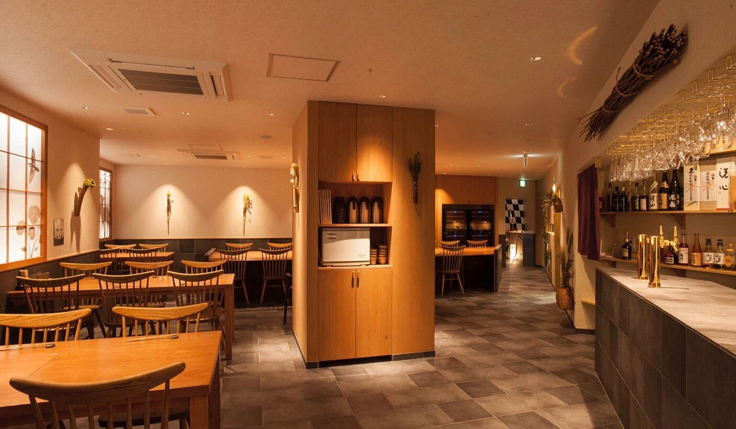 隠れ家のような入り口に、奥行きがあり広くゆったりとした店内。お昼はたくさん種類のあるお蕎麦や鴨と地鶏、発酵のお膳があり、中でもかも玉重が人気を呼んでいる。夜は和歌山有田の『紀州鴨』滋賀の『淡海地鶏』など、鴨・地鶏料理に発酵、醸し(かもし)の要素が三位一体となった料理の数々を味わうことができる。ソムリエ資格を持つ店長がお料理と相性の良いワインや日本酒をセレクトしてくれるのも密かなおすすめポイントだ。店内奥には座敷の個室も用意されているので、特別な日や子供連れでも安心して訪れることができる。