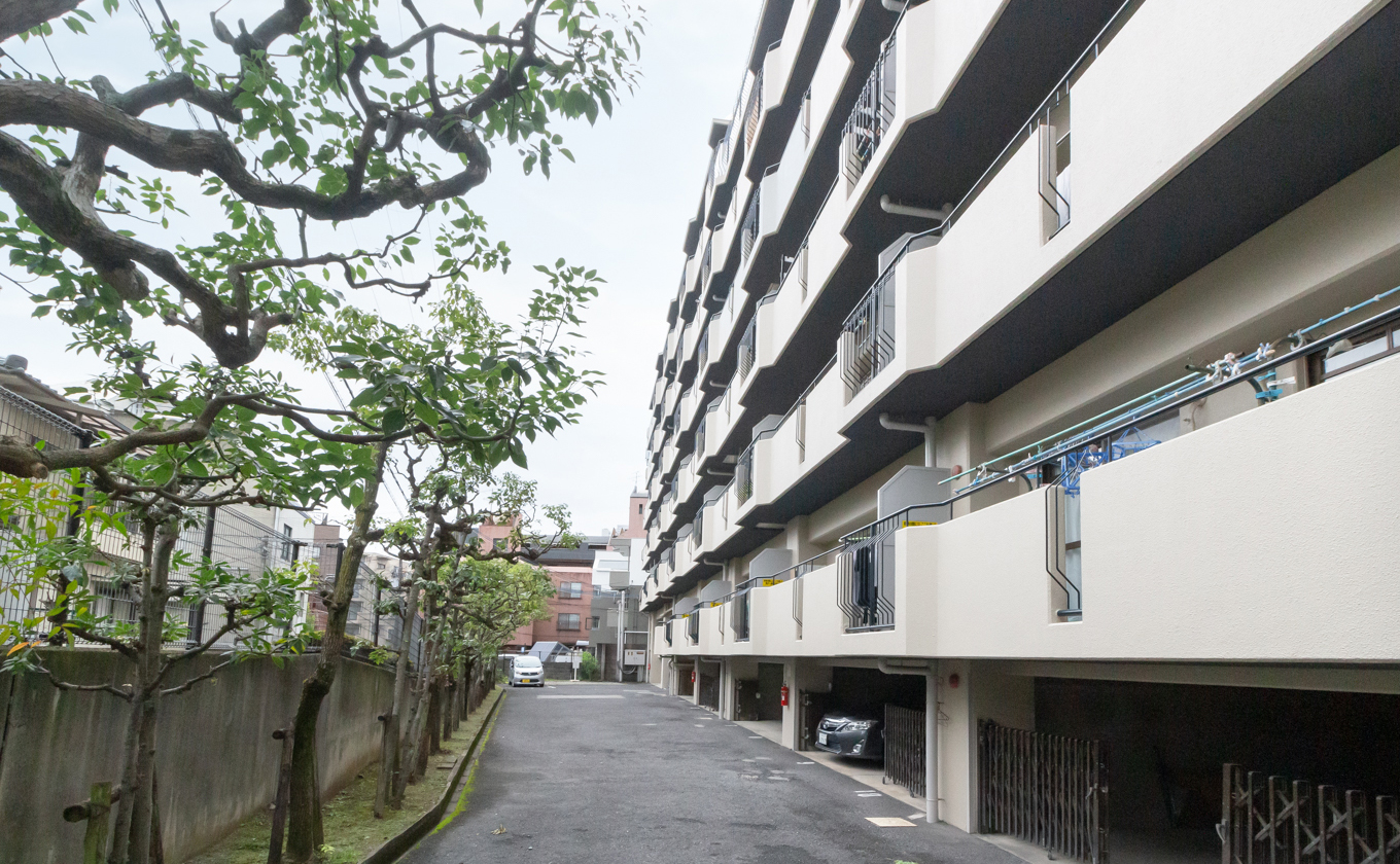 通りから少し中にはいった場所に位置し、シンプルで落ち着いた外観の佇まい。駅まで距離はありますが、買い物施設や飲食店、クリニックなども近くに揃うので普段の生活に便利です。住戸はコンパクトながらも無駄のない間取り。ライフスタイルに合わせた理想の空間にアレンジしてみては。